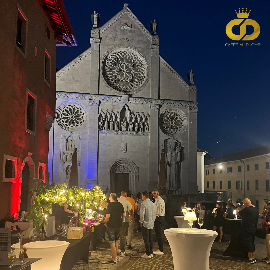 Un brindisi al tramonto, ai piedi del Duomo di Gemona, dove le montagne si stagliano come custodi silenziosi e il cielo si tinge di sfumature dorate. È qui che la storia incontra il presente, in una cornice che profuma di autenticità e di rinascita.
