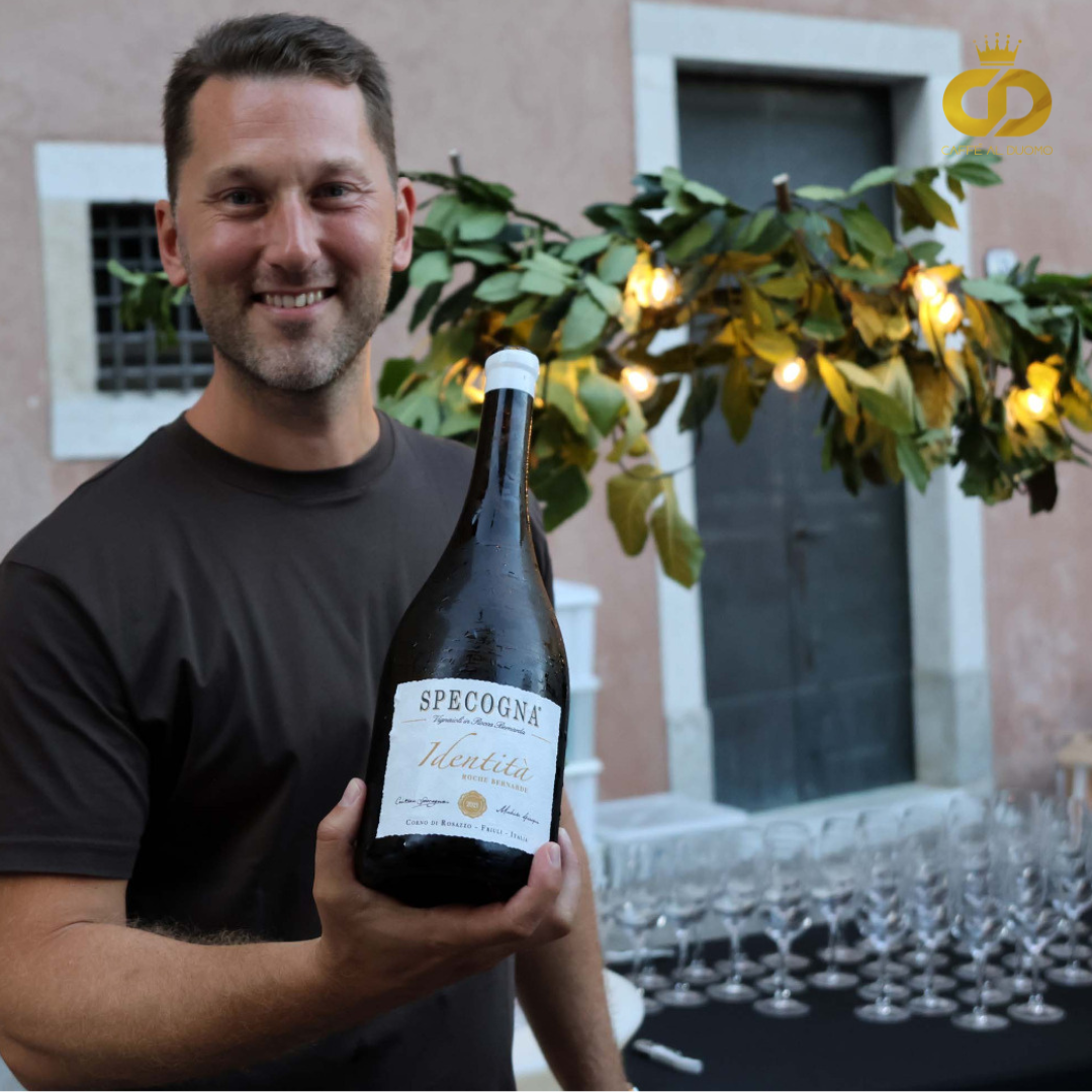 La serata è stata un viaggio nei sapori del Friuli: calici che raccontavano la terra e le sue vigne, piatti che intrecciavano la memoria della tradizione con l'audacia creativa dello chef Davide Patat.